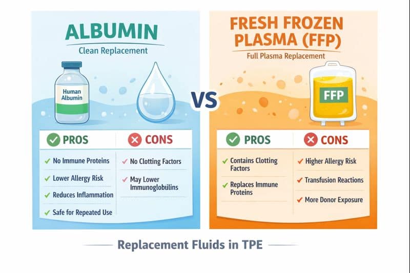 Because of this safety profile, albumin is the preferred replacement fluid in most non-emergent, non-hematologic TPE protocols worldwide.